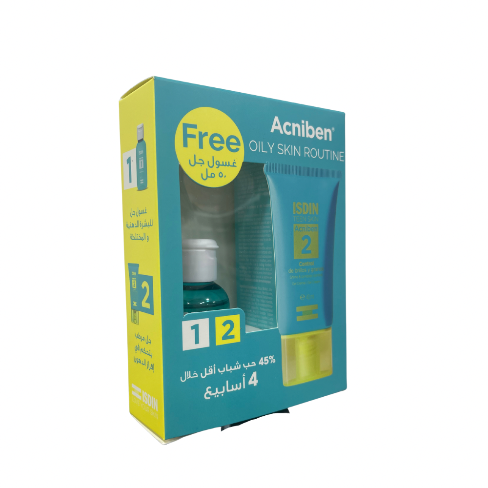 Isdin Acniben Shine And Spot Control Gel Cream 40ml & Free Acniben Facial Cleanser Gel 50ml